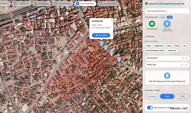 Sakarya’nın her köşesindeki depozitolu ambalaj toplama noktaları (DOA) ve sıfır atık konteynerleri, harita tabanlı bu sistem sayesinde şeffaf bir şekilde halkın kullanımına sunuldu. Sadece bir konum listesi olmayan bu rehber, kullanıcıyı bulunduğu noktadan alıp en yakın geri dönüşüm merkezine kadar yönlendiren akıllı bir asistan görevi görüyor.