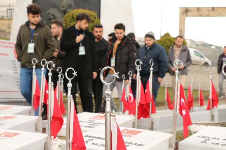 Türkiye Harp Malulü Gaziler Şehit Dul ve Yetimler Derneği Sakarya Şubesini ziyaret eden gençler gazi ve şehit yakınları ile buluştu. Şehit Kaymakam Muhammet Fatih Safitürk’ün kabrini ve Sakarya şehitliğini de ziyaret eden gençler, şehitlerimizi dualarla andıktan sonra, şehit aileleri ve gaziler ile Muhammet Fatih Safitürk Yurt Müdürlüğündeki yemekte bir araya geldiler.