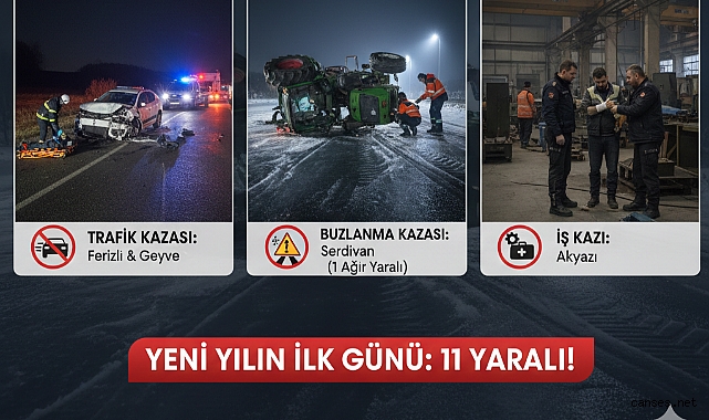 Yeni yılın ilk sabahında Serdivan Çubuklu Mahallesi'nde korkutan bir kaza meydana geldi. Saat 10.30 sıralarında A.N. (47) idaresindeki traktör, yoldaki buzlanma nedeniyle kontrolden çıkarak devrildi. Kazada sürücü A.N. hafif yaralanırken, traktörde yolcu olarak bulunan G.N. (40) ağır yaralandı. Yaralının hayati tehlikesinin bulunduğu öğrenildi.