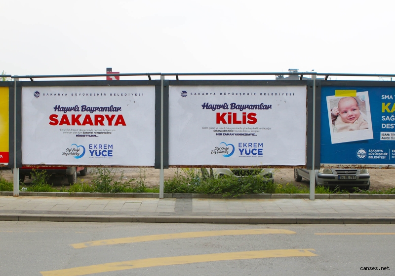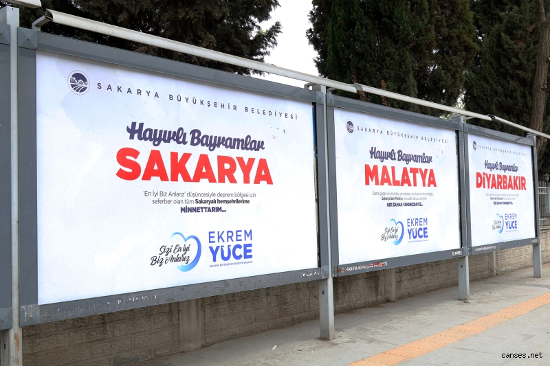 Büyükşehir, Ramazan Bayramı öncesi yaptığı bir uygulamayla da takdir kazandı. Sayılı günler kala Adapazarı, Serdivan, Erenler ve şehrin dört bir yanındaki billboardlara bayram görselleri yerleştirildi. Bu görsellerde depremi yaşayan şehirlerin isimleri tek tek yazılarak üzerine, “Hayırlı bayramlar. Daha güzel ve umut dolu yarınlarda yine hep birlikte olacağız. Sakarya’dan kucak dolusu sevgiler. Her zaman yanınızdayız” notu düşüldü.