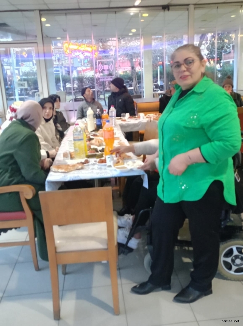 Sakarya’da “Koltuksuz Başkan” olarak tanınan ve engelli bireylere yönelik çalışmalarıyla bilinen Sibel Özkal ile engelli dostu Nurten Kar Savuran’ın organizasyonunda gerçekleştirilen iftar programında engelli bireyler ve aileleri aynı sofrada buluştu. Manevi duyguların yoğun şekilde yaşandığı programda katılımcılar Ramazan ayının bereketini paylaşmanın mutluluğunu yaşadı.Protokol ve davetlilerden katılımDüzenlenen iftar programına AK Parti İl Kadın Kolları Yönetim Kurulu Üyesi Ayşegül Türkcan, AK Parti Akyazı Kadın Kolları Başkanı Emine Kır, Akyazı Kızılay Başkanı Mustafa Birincioğlu ve eşi Nurten Birincioğlu da katılım sağladı. Pograma ayrıca Sakaryalı ünlü Pop Müziği sanatçı Akif Yener ve Program Sonucu ve ses sanatçısı Şule Bayri de katılarak engelli bireyler ve aileleriyle bir araya geldi. Davetliler, program boyunca engelli bireylerle sohbet ederek Ramazan ayının paylaşma ve dayanışma ruhunu birlikte yaşadı.Dayanışma ve kardeşlik duyguları pekiştiİftar programında engelli bireyler ve aileleriyle yakından ilgilenen davetliler, bu tür buluşmaların toplumsal dayanışmayı güçlendirdiğine dikkat çekti. Katılımcılar, Ramazan ayının manevi atmosferinde aynı sofrada buluşmanın mutluluğunu yaşadı. Organizasyonu gerçekleştiren Sibel Özkal ve Nurten Kar Savuran’ın öncülüğünde gerçekleştirilen geleneksel iftar programı, birlik ve dayanışma mesajlarıyla sona erdi. Engelli bireyler ve aileleri, düzenlenen programdan duydukları memnuniyeti dile getirerek emeği geçenlere teşekkür etti.