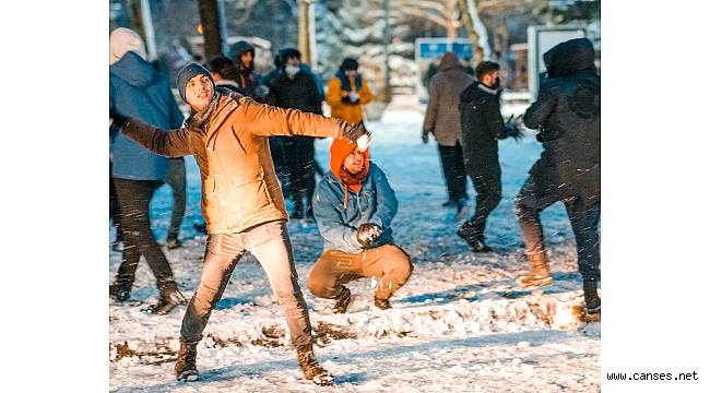 Katılımcılara ücretsiz helva dağıtılan etkinlikte öğrenciler toplu kartopu savaşı düzenledi.