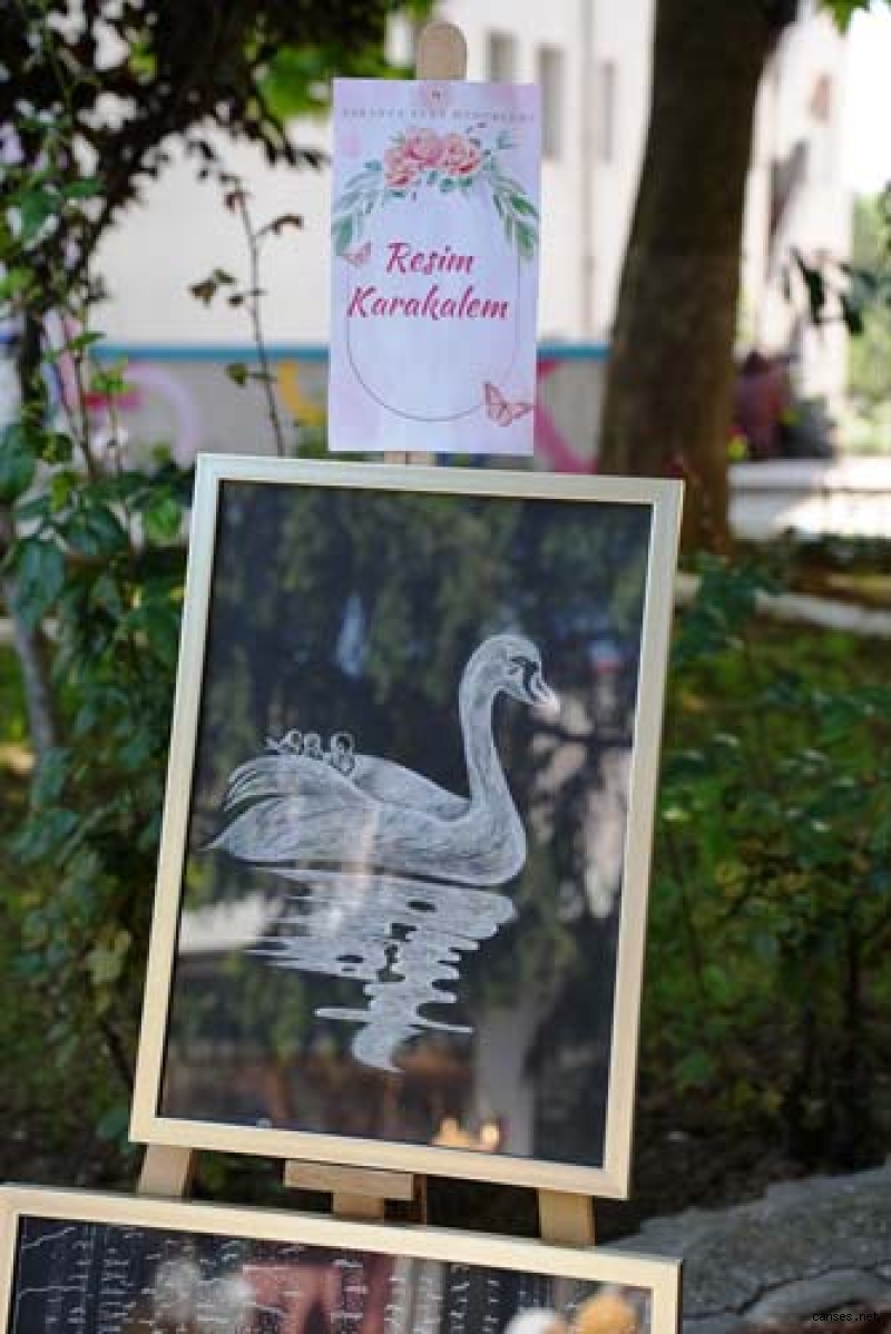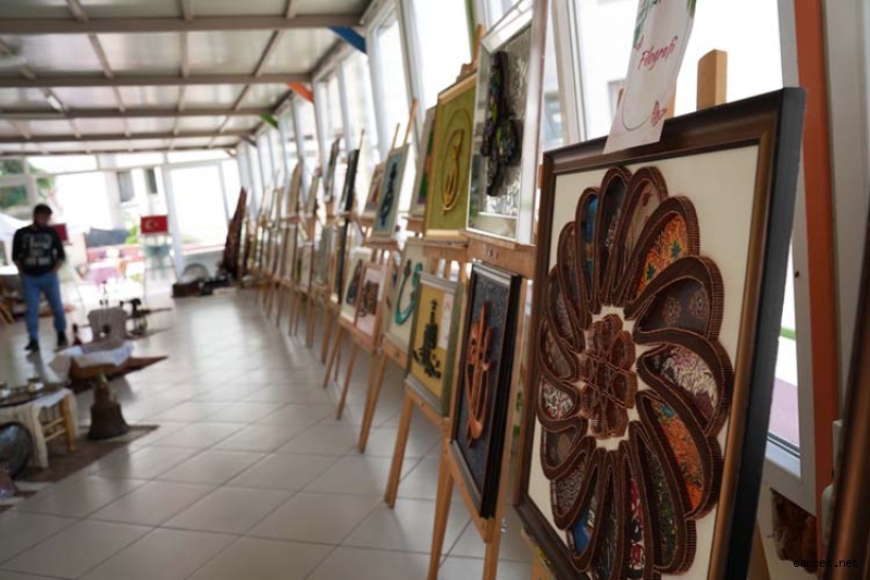 Yurt bahçesinde gerçekleşen sergide, Sakarya GSB Yurt Müdürlüğünde yıl boyunca devam eden; Filografi, Seramik, Tezhip, Hat, Ebru, Dikiş, Sıfır Atık, Resim, Takı Kursu gibi farklı Türk-İslam ve El Sanatları kurslarında öğrencilerin yaptığı birçok kıymetli eser yıl sonu sergisinde sergilendi.