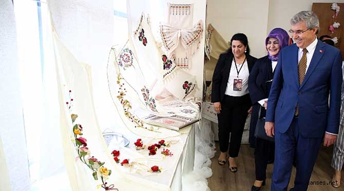 Kursiyerlerin yıl boyunca hazırladığı el emeği eserlerin sergilendiği programda Başkan Ekrem Yüce ve eşi Filiz Yüce kursiyerlere sertifikalarını takdim etti. Kursiyerler ise el emeği eser olan tabloyu Başkan Yüce’ye takdim ederken; açılış kurdelesinin ardından sergi gezildi.