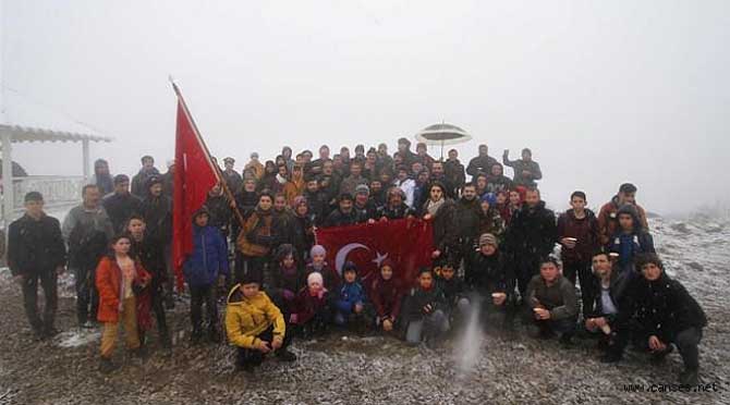Zorlu hava şartlarında kar ve soğuğa aldırış etmeden yürüyüşe her yaştan vatandaşımız ellerinde Türk bayraklarıyla, zirve yürüyüşüne katıldı. Yoğun kar yağışının bulunduğu Aksartepe zirvesinde katılımcılar şehit ve gazilerimizi okunan Kuranı-ı Kerim, Dualar ve İstiklal Marşıyla yâd ettiler. Kar yağışının bulunduğu zirvede Akyazı Belediyesi katılımcılara günün anlam ve önemine uygun buğday çorbası ikramında bulundu.