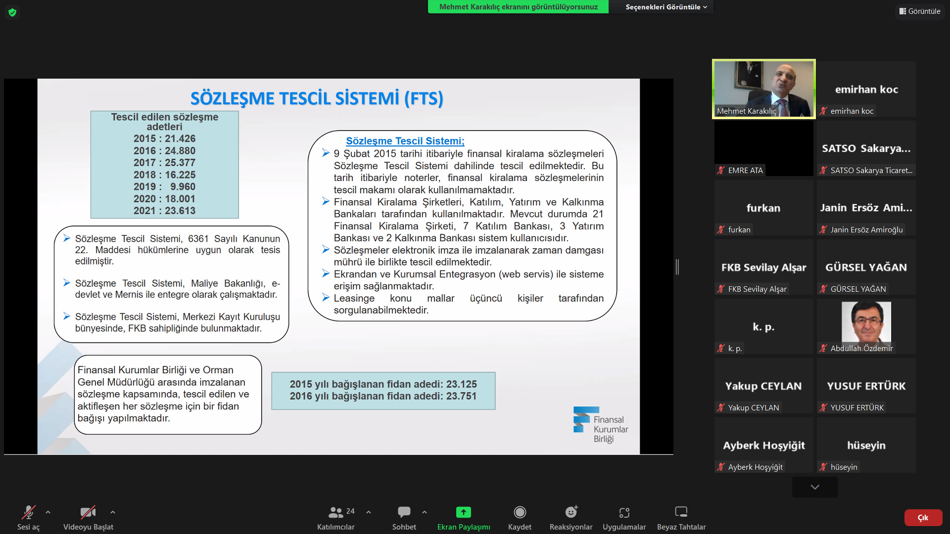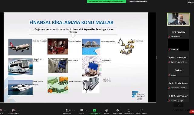 FKB Finansal Kiralama Sektöründen sorumlu Genel Sekreter Yrd. Mehmet Karakılıç'ın sunumu ve SATSO Üyesi firma temsilcilerinin katılımıyla webinar platformu üzerinden gerçekleştirildi.