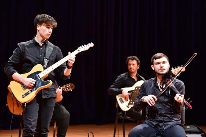 Öğr. Gör. Tuncay Kardaş, konsere “Bu gece benim için özel bir gece. Kendisiyle sürekli çalıştığım oğlum bugün ilk kez benimle sahne alacak” diyerek oğlu Ali Efe Kardaş’ı sahneye davet etti ve konsere beraber devam ettiler.
