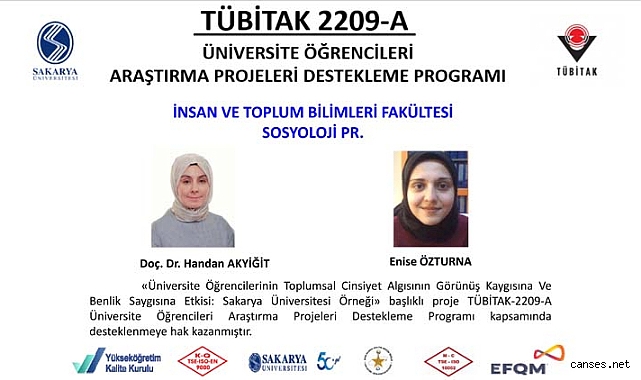 -İnsan ve Toplum Bilimleri Fakültesi Sosyoloji Bölümü Öğretim Üyesi Doç. Dr. Handan Akyiğit’in danışmanlığında yürütülen öğrencimiz Enis Özturna’nın “Üniversite Öğrencilerinin Toplumsal Cinsiyet Algısının Görünüş Kaygısına ve Benlik Saygısına Etkisi: Sakarya Üniversitesi Örneği” başlıklı projesi,