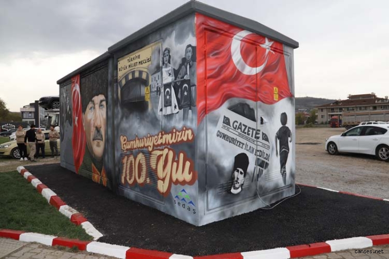 Sakarya Elektrik Dağıtım A.Ş. (SEDAŞ), elektrik trafoları aracılığıyla toplumsal farkındalık yaratmak için “Tuvalimiz Trafolar” projesini yaklaşık üç yıldır sürdürüyor. Bu yıl da Cumhuriyetin 100. yılı etkinlikleri kapsamında Sakarya’nın Serdivan ilçesinde projesini gerçekleştirdi. SEDAŞ bayram coşkusunu, Serdivan AVM karşısında yer alan beton köşk tipi trafoya resmederek paylaştı.