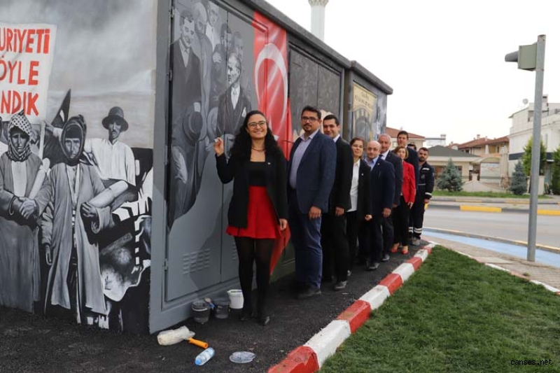 100’üncü yılını kutladığımız 29 Ekim Cumhuriyet Bayramı coşkusu Serdivan’da renkli görüntülere büründü. Yurdumuzun dört bir yanında yapılan kutlamalara, SEDAŞ’ta uzman ressamlarla iş birliği içerisinde katkı sağladı. SEDAŞ Üst Yönetim Ekibi ve çalışanların da dahil olduğu Serdivan ilçe merkezindeki beton köşk tipi trafoya, “Cumhuriyetimizin 100. Yılı”, “Cumhuriyeti Biz Böyle Kazandık” ve “Cumhuriyet İlan Edildi” temalı görseller resmedildi.