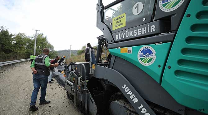Yolu’nda başlatılan çalışmalar kapsamında sıcak asfalt serim işlemi başlatıldı.
