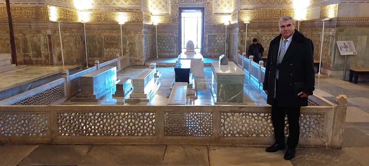 Türkiye’nin Semerkant’ta inşa ettiği İmam Al-Buhari mescidini, Semerkant Mirzo Uluğ Bey Rasathanesi, Emir Timur Türbesi, Tilla Kari, Uluğ Bey ile Şerdor Medreselerini ve Ebu Mansur el-Matüridî Türbesini ziyaret eden Başkan Yüce, “Tarihi İpek Yolu'nun en önemli güzergâhlarından Semerkant, sahip olduğu tarihi ve kültürel miras ile manevi ikliminin yanı sıra çok önemli ilim adamlarının yetiştiği bir şehirdir. Tarihi dokunun korunduğu bu kent ile kurduğumuz kardeşlik köprüleri inşallah Sakaryamız için de gelecekte çok önemli bir iş birliği olarak öne çıkacaktır. Bizlere kapılarını açan, güleryüzleriyle karşılayan tüm kardeşlerime teşekkür ediyorum” dedi.