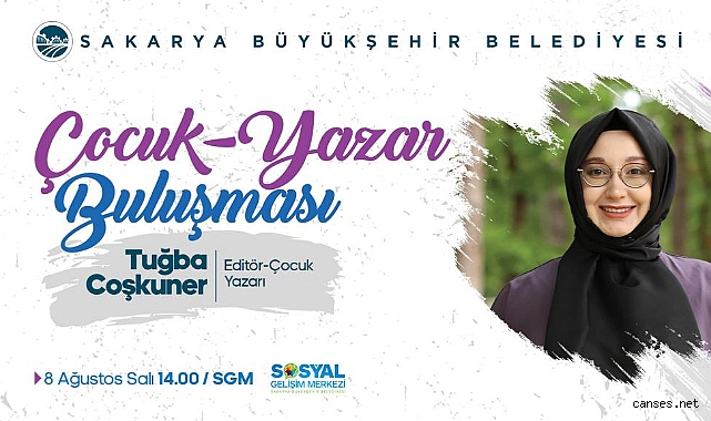 Büyükşehir Belediyesi Sosyal Gelişim Merkezi’nde çocuk-yazar buluşmaları başlıyor. 8 Ağustos Salı günü saat 14.00’da Adapazarı SGM konferans salonunda gerçekleşecek etkinlikte Yazar Tuğba Coşkuner, minik okurlarıyla buluşacak.