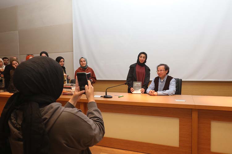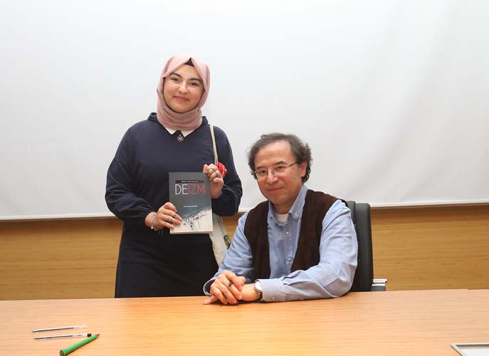 SAÜ İlahiyat Fakültesi Konferans Salonu’nda gerçekleştirilen Son Hurefe: Deizm konulu konferansa, İlahiyat Fakültesi Dekanı Prof. Dr. Ahmet Bostancı, Sakarya İl Müftüsü Hasan Başiş, öğretim üyeleri ve çok sayıda öğrenci katıldı. Program sonunda katılımcılara hediye edilen kitaplar Prof. Dr. Baloğlu tarafından imzalandı.