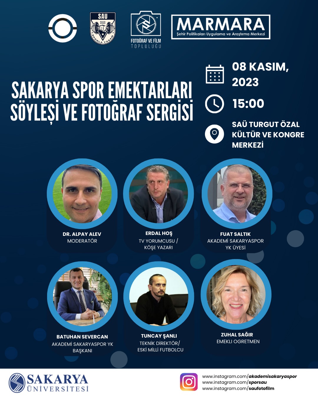 Sergi öncesinde, SAÜ Marmara Şehir Politikaları Uygulama ve Araştırma Merkezi ile Akademi Sakaryaspor işbirliğiyle düzenlenecek panele Sakaryaspor Teknik Direktörü Tuncay Şanlı, spor yorumcusu Erdal Hoş, ilimizin tanınmış beden eğitimi öğretmeni Zuhal Sağır, Akademi Sakaryaspor Yonetim Kurulu Başkanı Avukat Batuhan Severcan ve Akademi Sakaryaspor Yonetim Kurulu Üyesi Fuat Saltık konuşmacı olarak katılacaklar.