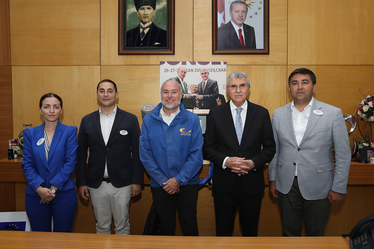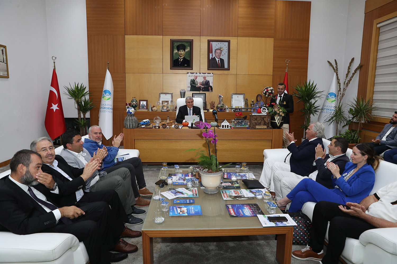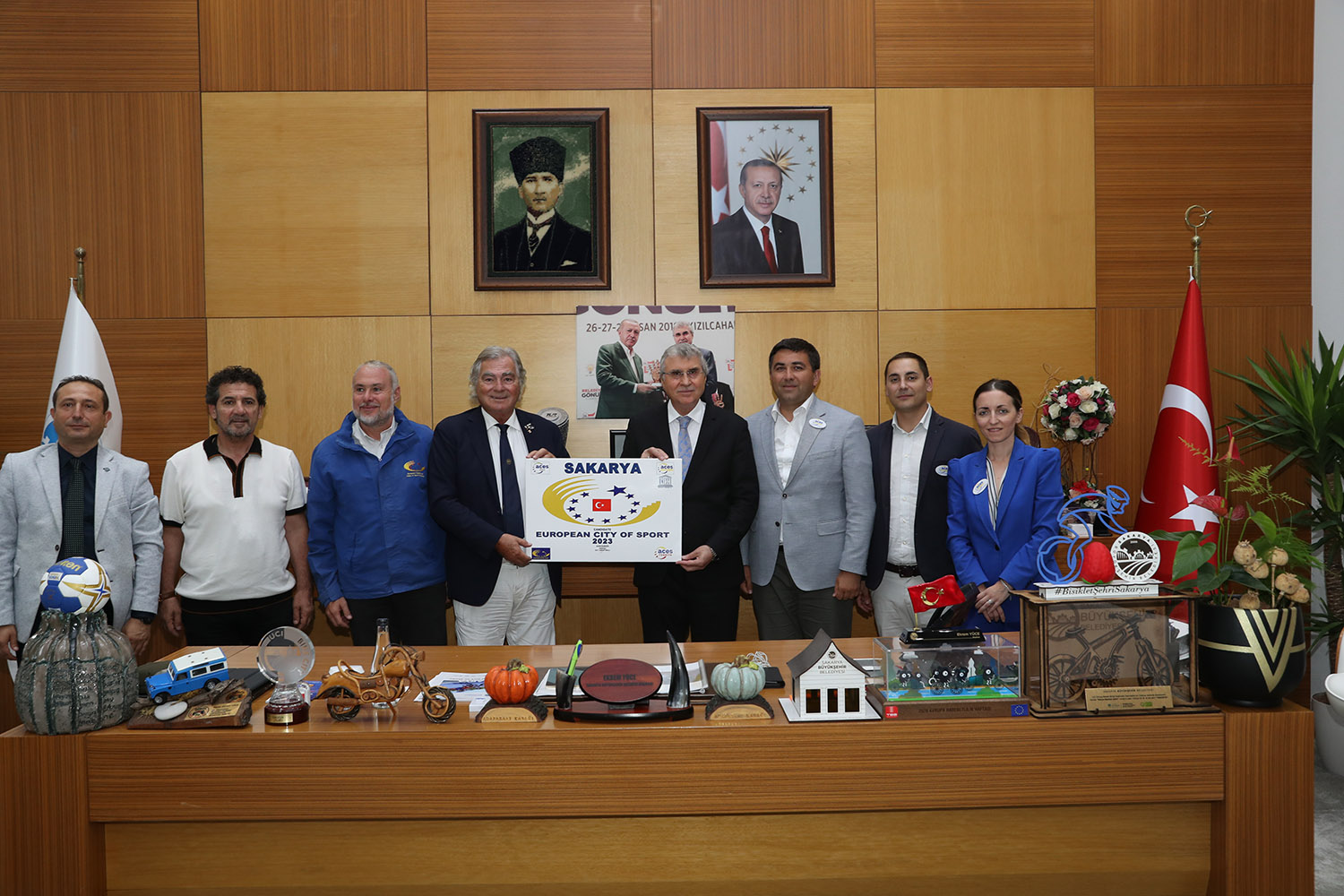 Sakarya Büyükşehir Belediye Başkanı Ekrem Yüce, 2023’te yapılacak olan Avrupa Spor Şehri Unvanı için çalışmalarını sürdürüyor. Başkan Yüce, ACES (Avrupa Spor Başkentleri ve Şehirleri Federasyonu) Avrupa Federasyonundan 5 kişilik heyeti makamında ağırlayarak Sakarya’ya ilişkin genel bilgileri verdi, tanıtımları yaptı. Ziyarete Federasyondan Başkan Gian Francesco Lupatelli, Genel Sekreter Hugo Alonso, Heyet Üyesi Mushfiq Jafarov, Heyet Üyesi ve Hanımı Fabrizio Ricco katıldı. Büyükşehir ve SASKİ bürokratları ile heyeti karşılayan Başkan Yüce, “Spor milletlerin ortak dilidir. Kardeşliğin, barışın, evrenselliğin bir simgesidir” dedi.