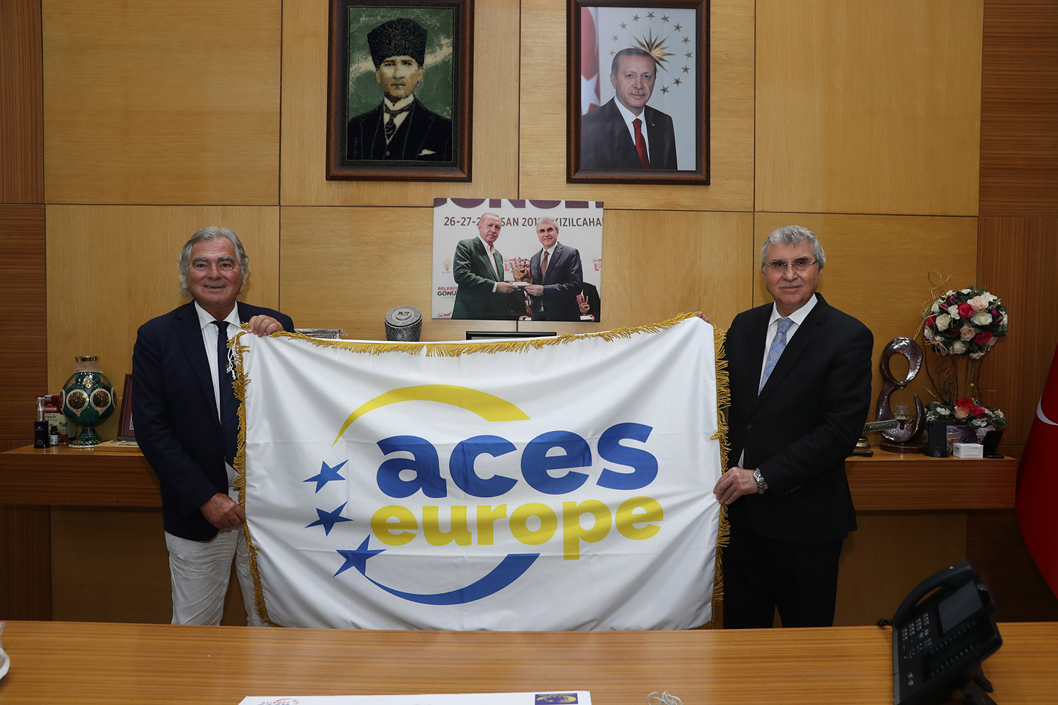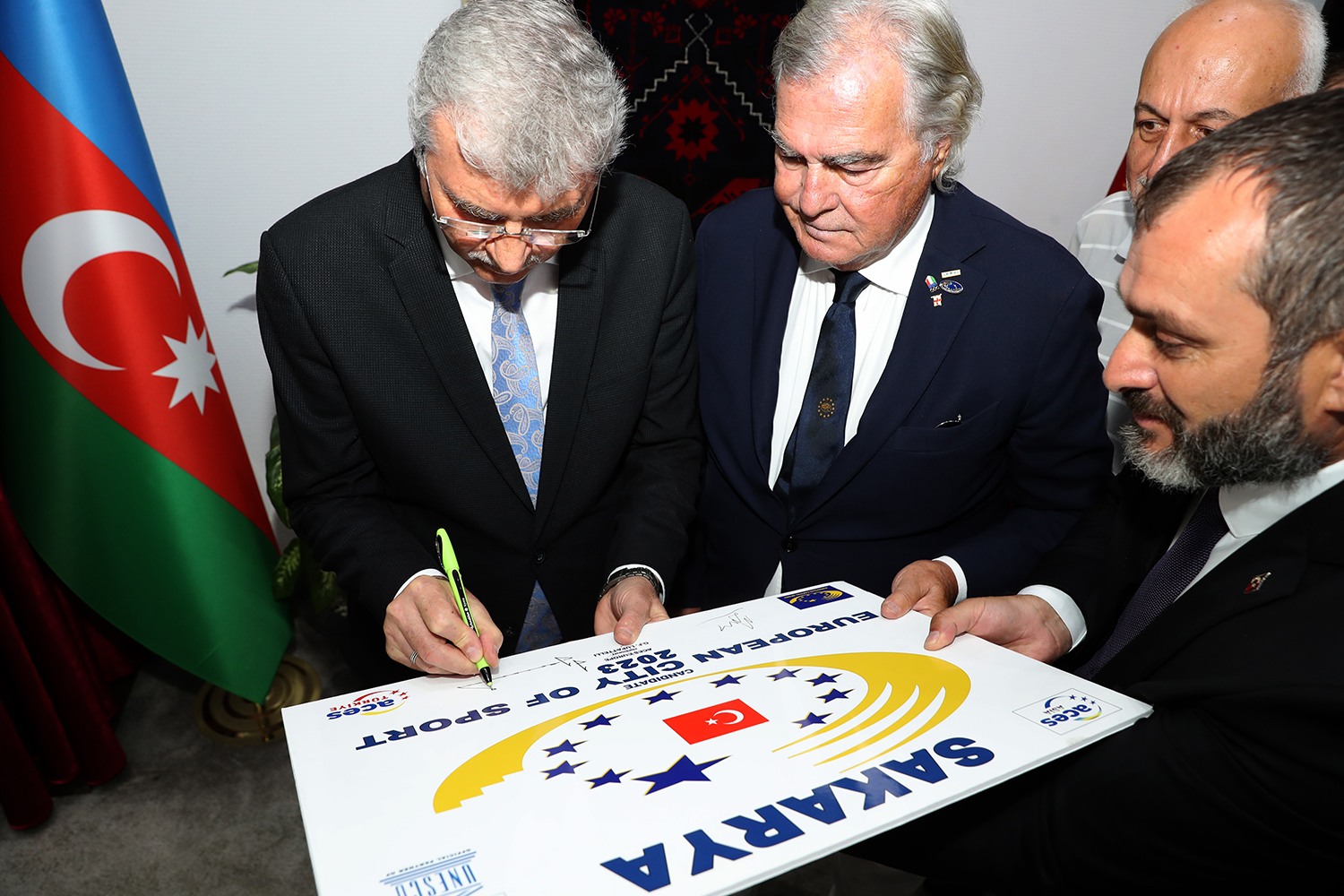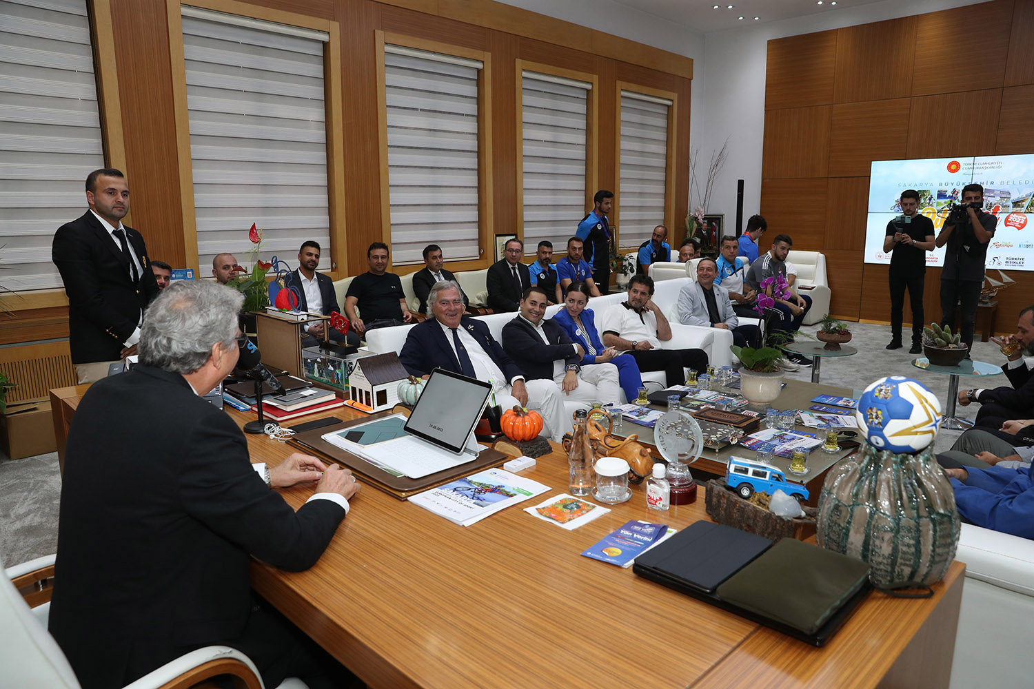 Sakarya Büyükşehir Belediye Başkanı Ekrem Yüce, 2023’te yapılacak olan Avrupa Spor Şehri Unvanı için çalışmalarını sürdürüyor. Başkan Yüce, ACES (Avrupa Spor Başkentleri ve Şehirleri Federasyonu) Avrupa Federasyonundan 5 kişilik heyeti makamında ağırlayarak Sakarya’ya ilişkin genel bilgileri verdi, tanıtımları yaptı. Ziyarete Federasyondan Başkan Gian Francesco Lupatelli, Genel Sekreter Hugo Alonso, Heyet Üyesi Mushfiq Jafarov, Heyet Üyesi ve Hanımı Fabrizio Ricco katıldı. Büyükşehir ve SASKİ bürokratları ile heyeti karşılayan Başkan Yüce, “Spor milletlerin ortak dilidir. Kardeşliğin, barışın, evrenselliğin bir simgesidir” dedi.