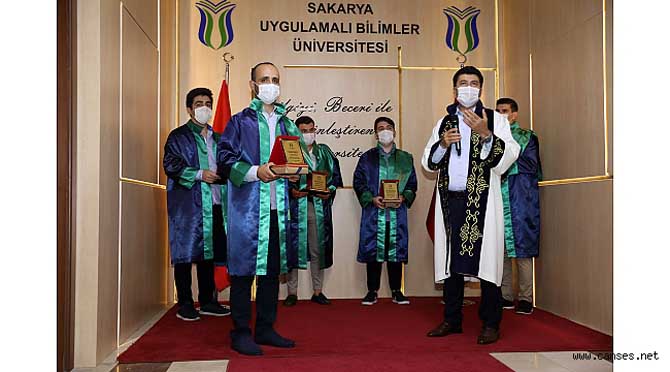 Sakarya Uygulamalı Bilimler Üniversitesi (SUBÜ) ‘Üniversite Dereceleri Töreni’ Rektörlük Binası’nda düzenlendi. SUBÜ’de 2019-2020 Akademik Yılı’nda lisans düzeyinde üniversite birincisi Turizm Fakültesi Turizm İşletmeciliği Bölümü öğrencisi Usame Şeyho, üniversite ikincisi Teknoloji Fakültesi İnşaat Mühendisliği Bölümü öğrencisi Muaz Hattab, üniversite üçüncüsü ise Teknoloji Fakültesi Mekatronik Mühendisliği Bölümü öğrencisi Musa Aydın oldu. Ön lisans düzeyinde üniversite birincisi Sakarya Meslek Yüksekokulu Muhasebe ve Vergi Uygulamaları Programı öğrencisi Fatma Atar, üniversite ikincisi Pamukova Meslek Yüksekokulu İşletme Yönetimi Programı öğrencisi Mustafa Birol, üniversite üçüncüsü ise Sapanca Meslek Yüksekokulu Muhasebe ve Vergi Uygulamaları Programı öğrencisi Gürkan Küçükvardar oldu. Öğrencilere plaket ve hediyeleri Rektör Prof. Dr. Mehmet Sarıbıyık, Turizm Fakültesi Dekanı Prof. Dr. Oğuz Türkay, Teknoloji Fakültesi Dekanı Prof. Dr. Yusuf Çay, Pamukova Meslek Yüksekokulu Müdürü Doç. Dr. Fatih Sönmez ve Sapanca Meslek Yüksekokulu Müdürü Prof. Dr. Burhanettin Zengin takdim etti. Programda Aile, Çalışma ve Sosyal Hizmetler İl Müdürü Musa Zor da yer aldı. SUBÜ’nün diğer fakülte ve meslek yüksekokullarında da fakülte, meslek yüksekokulu, bölüm ve program çapında dereceye giren öğrenciler ödüllendirildi.