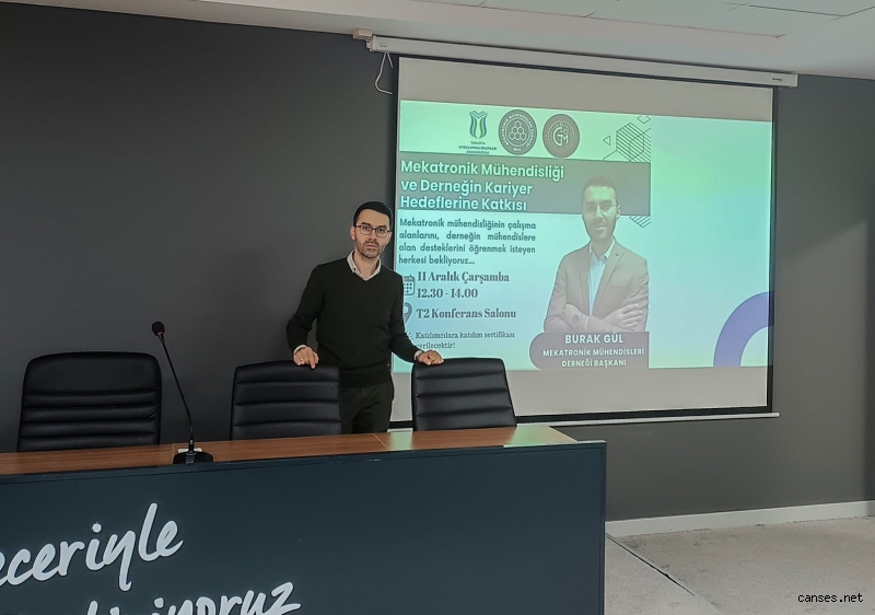 Sakarya Uygulamalı Bilimler Üniversitesi (SUBÜ) Girişimci Mühendisler Topluluğu, ‘Mekatronik Mühendisliği ve Derneğin Kariyer Hedeflerine Katkısı’ başlıklı bir etkinlik düzenledi. Rektörlük Konferans Salonu’nda düzenlenen etkinliğe Mekatronik Mühendisleri Derneği Yönetim Kurulu Başkanı Burak Gül konuşmacı olarak katıldı. Gül, öğrencilere Mekatronik Mühendisliği ve dernek hakkında bilgi vererek iş hayatına yönelik tavsiyelerde bulundu, deneyimlerini paylaştı ve gelen soruları cevaplandırdı. Etkinliğin sonunda Gül’e günün anısına teşekkür belgesi takdim edildi.