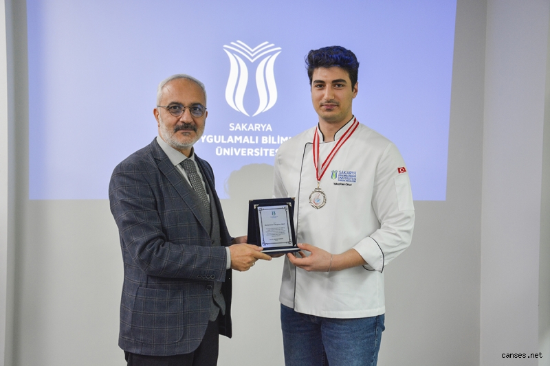 Sakarya Uygulamalı Bilimler Üniversitesi (SUBÜ) Turizm Fakültesi Gastronomi ve Mutfak Sanatları Bölümü, ‘Selçuklu Mutfağı’ başlıklı bir etkinlik düzenledi. Etkinliğe SUBÜ Rektörü Prof. Dr. Mehmet Sarıbıyık, Rektör Yardımcıları Prof. Dr. Sinan Serdar Özkan ve Prof. Dr. Oğuz Türkay ile Turizm Fakültesi Dekanı Prof. Dr. Mehmet Sarıışık katıldı. Gastronomi ve Mutfak Sanatları Bölüm Başkanı Doç. Dr. Serkan Şengül koordinatörlüğünde, bölümün lisans ve lisansüstü düzeyinde öğrenim gören öğrencilerinin hazırlığını yaptığı etkinlik, Selçuklu mutfağının tanıtıldığı sunum ile başladı. Daha sonra misafirlere menüde yer alan ve Selçuklu mutfak kültürüne özgü tutmaç çorbası, herise (keşkek), cevizli nukul, sirkencübin eşliğinde et tiridi ve zerde tatlısı servis edildi. Menüde yer alan yiyecekler katılımcılardan tam not aldı. Etkinliğin sonunda, 2023 Helal Expo kapsamında düzenlenen Dünya Aşçılar Şampiyonası’na bireysel kategoride katılarak altın madalya kazanan Faiz Fajar Mulia ile üniversiteler arası kategoride yarışarak ikincilik kupası ve gümüş madalya kazanan Ahmet Güler, Sima Demirci ve Yakuphan Obut’tan oluşan fakülte takımına Rektör Sarıbıyık, Rektör Yardımcıları Özkan ve Türkay ile Dekan Sarıışık tarafından plaket takdim edildi.