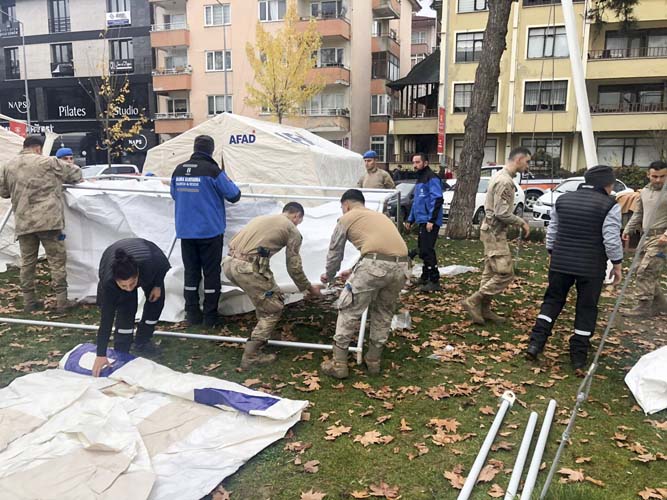 Sakarya Uygulamalı Bilimler Üniversitesi (SUBÜ) Arama ve Kurtarma Ekibi, Düzce Gölyaka’da meydana gelen depremin ardından AFAD Sakarya İl Müdürlüğü’nün acil talebi doğrultusunda oluşturulan 9 kişilik ekiple bölgede yürütülen çalışmalara katıldı. Çalışmalarda Sakarya’dan SUBÜ ekibi ile birlikte AFAD İl Müdürü Hüseyin Kaşkaş’ın da aralarında olduğu 50 kişilik ekip yer aldı. SUBÜ Arama ve Kurtarma Ekibi çadır kurulumu, sosyal destek, battaniye, yastık ve iaşe dağıtımı gibi faaliyetlerde yer aldı. Ayrıca elektriği kesilen vatandaşlar ile yurt ve barınma sıkıntısı yaşayan vatandaşların sorunlarına yardımcı olundu. İçişleri Bakanı Süleyman Soylu’ya ekip hakkında bilgi verildi. Bakan Soylu ise destekler için SUBÜ ve Rektör Prof. Dr. Mehmet Sarıbıyık’a teşekkür etti.