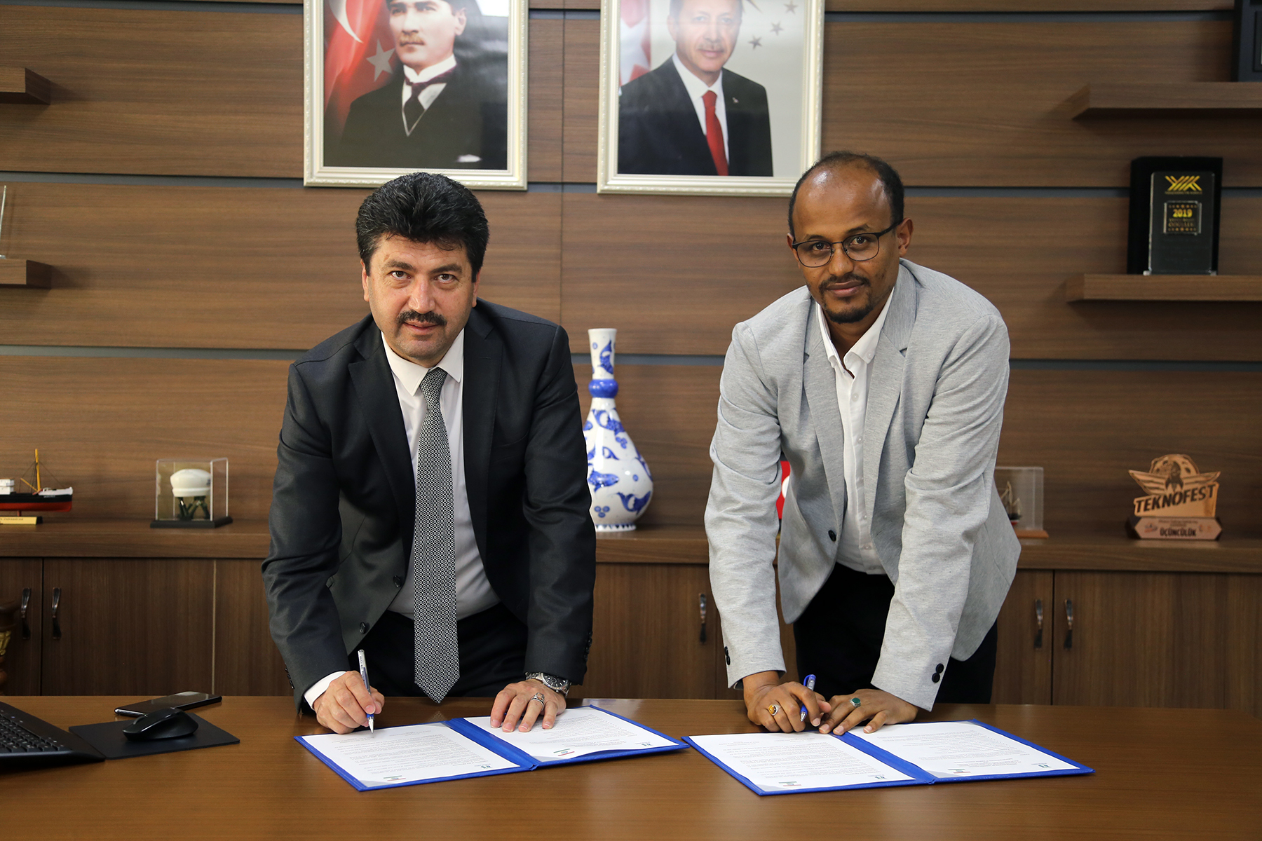 Ülkelerinin gelişimi için büyük bir gayretle çalıştıklarını kaydeden Harar Bölgesel Devlet Eğitim Bürosu Başkanı Muktar Salih, “Kıymetli rektörümüzün sözleri oldukça etkileyiciydi. Böyle bir iş birliği yapmak bizim için onur. Eğitimcilerimizin Türkiye’ye gelmesini, uzun ve kısa süreli eğitimler almasını önemsiyoruz. Bunun ülkemize ve insanlarımıza katkı sağlayacağını düşünüyoruz. Kültürlerimizin ve bizlerin de birbirimizi tanımamızı önemsiyoruz. İş birlikleri geliştirerek köprüler kurmak bizlere çok şeyler katıyor. Öğrencilerimize kaliteli eğitim vermek istiyoruz. Bu toplumumuzun kalitesini de değiştirecektir. İşlerin nasıl yürütüldüğünü öğrenmek istiyoruz. Sizleri Harar’da görmek bizleri çok mutlu edecektir” ifadelerini kullandı.
