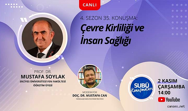Sakarya Uygulamalı Bilimler Üniversitesi (SUBÜ) tarafından düzenlenen SUBÜ Konuşmaları’nın 35’inci konuşmacısı, TÜBİTAK Bilim Ödülü ve İlim Yayma Ödülü sahibi Erciyes Üniversitesi Fen Fakültesi Öğretim Üyesi Prof. Dr. Mustafa Soylak olacak. Moderatörlüğünü SUBÜ Teknoloji Fakültesi Öğretim Üyesi Doç. Dr. Mustafa Can’ın yapacağı söyleşi ‘Çevre Kirliliği ve İnsan Sağlığı’ başlığıyla gerçekleştirilecek. Söyleşide çevre kirliliğine sebep olan etmenler, bunların azaltılması için yürütülen ve yürütülmesi gereken çalışmalar, kirliliğin insan sağlığı üzerindeki etkisi ile kaliteli ve sağlıklı bir yaşam için çevrenin bulundurması gereken nitelikler üzerinde durulacak. Üniversitenin YouTube kanalı SUBÜ Haber’den canlı yayınlanacak söyleşi, 2 Kasım Çarşamba saat 14.00’te gerçekleştirilecek.