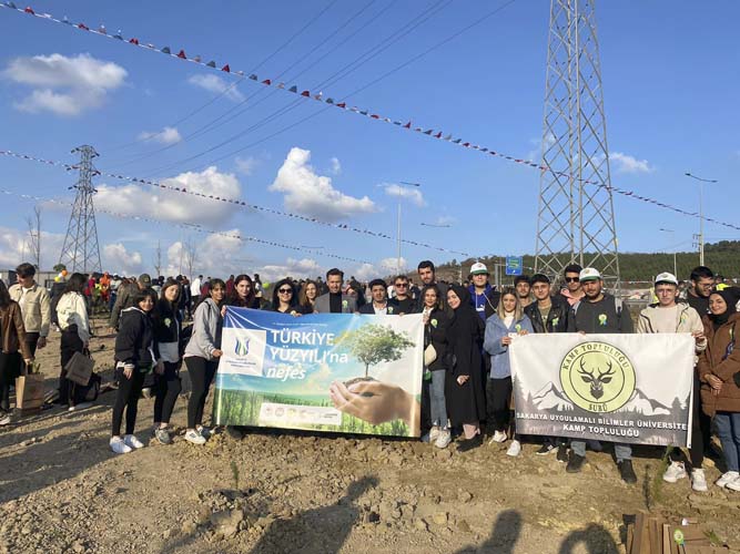 Sakarya Uygulamalı Bilimler Üniversitesi (SUBÜ) Kamp Öğrenci Topluluğu, İyilik Gönüllüleri Topluluğu, Tarım Geliştirme Topluluğu ve Peyzaj Topluluğu öğrencileri ‘Türkiye Yüzyılına Nefes’ temasıyla düzenlenen 11 Kasım Milli Ağaçlandırma Günü’nde Kuzey Marmara Otoyolu kenarında bulunan alana fidan dikimi gerçekleştirdi. Sağlık Kültür ve Spor Daire Başkanlığı koordinasyonunda bir araya gelen öğrenciler doğaya dokunmanın mutluluğunu yaşarken Sakarya Valisi Çetin Oktay Kaldırım ve Orman Bölge Müdürü Ziya Polat ile günün anısına fotoğraf çektirdiler.
