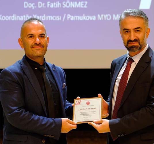 Sakarya Uygulamalı Bilimler Üniversitesi (SUBÜ) Pamukova Meslek Yüksekokulu Müdürü Doç. Dr. Fatih Sönmez, Sivas Cumhuriyet Üniversitesi (SCÜ) Meslek Yüksekokulları Koordinatörlüğü (MEYOK) tarafından düzenlenen eğitim seminerine davetli konuşmacı olarak katıldı. 4 Eylül Kültür Merkezinde düzenlenen seminerde SCÜ Rektör Vekili Prof. Dr. Hakan Yekbaş, Rektör Danışmanı ve MEYOK Koordinatörü Doç. Dr. Enes Baha Biçer ve MYOlarda görev yapan öğretim elemanları yer aldı. Seminerde 3+1 Eğitim Modelininin Uygulama Süreçleri başlıklı bir sunum gerçekleştiren Doç. Dr. Fatih Sönmez; iş dünyasıyla kurulan ilişkilerin çıktıları, modelin sahadaki etkisi ve kazanımlarına ilişkin bilgiler verdi ve katılımcılardan gelen soruları cevaplandırdı. Seminer sonunda Sönmeze Rektör Vekili Yekbaş tarafından plaket takdim edildi.