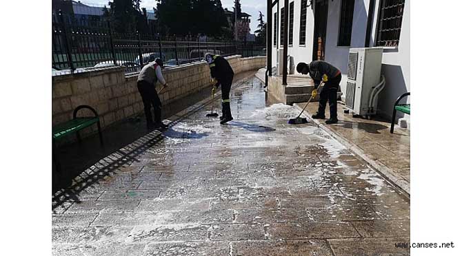 Belediye hizmet binaları ve kamu binaları başta olmak üzere halkın yoğun olarak kullandığı alanda ilaçlamalar devam ediyor. Dezenfekte solüsyonu içeren ve ince püskürtme tekniği kullanan el ULV cihazıyla yapılan dezenfaktan çalışmalarının yanı sıra, belediye hizmet binaları ve hizmet noktalarına standartlara uygun el dezenfektanı yerleştirildi. Diğer yandan ekipler cami bahçeleri başta olmak üzere halkın yoğun olarak kullandığı noktalarda köpüklü, tazyikli su ile yıkama işlemlerini sürdürüyor. Belediyenin tüm müdürlüklerinin Başkan Babaoğlu’nun talimatlarıyla süreçle ilgili hassasiyetle çalıştıkları belirtildi.