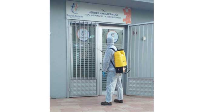 Başkan Turgut Babaoğlu’nun talimatıyla koronavirüs (Kovid-19) ile ilgili İçişleri Bakanlığından gelen genelgeler ve Sağlık Bakanlığından gelen uyarıları titizlikle dikkate alıp uygulayan Hendek Belediyesi, tedbiri elden bırakmıyor. Ülkemizde ilk ölüme neden olan salgınla alakalı olarak tedbir çalışmalarını yoğunlaştıran Hendek Belediyesi, tüm sosyal ve kültürel etkinlikleri durdurmuştu. Vatandaşlarımızın çok yakın bir mesafede bir arada bulunarak hastalığın bulaşma riskine karşılık tedbirlerini alan Hendek Belediyesi, dezenfektan harekatına devam ediyor.