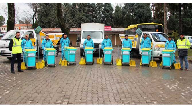 Hendek Belediyesi, cadde ve sokaklarda çevre kirliliğini önlemek için çalışan mobil temizlik ekibinin kıyafet, çöp toplama araçları ve ekipmanlarını yeniledi.