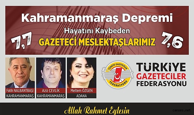TGF’nin deprem bölgesindeki cemiyet başkanlarından aldığı bilgilere göre enkaz altında kalarak hayatını kaybeden gazetecilerin isimleri şöyle;