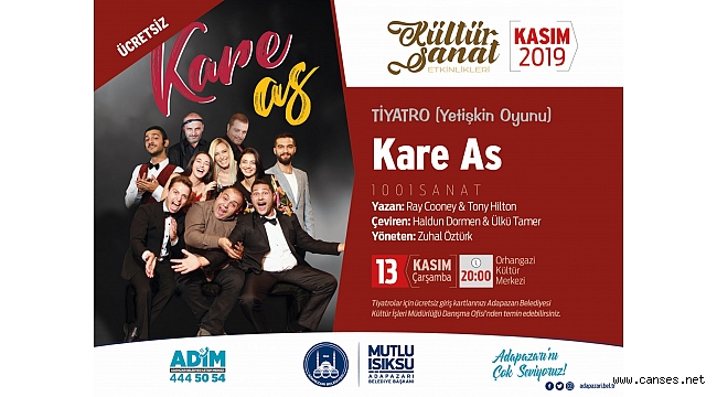 sahnelenecek “Kare As” tiyatro oyunu ile devam edecek. 13 Kasım Çarşamba günü