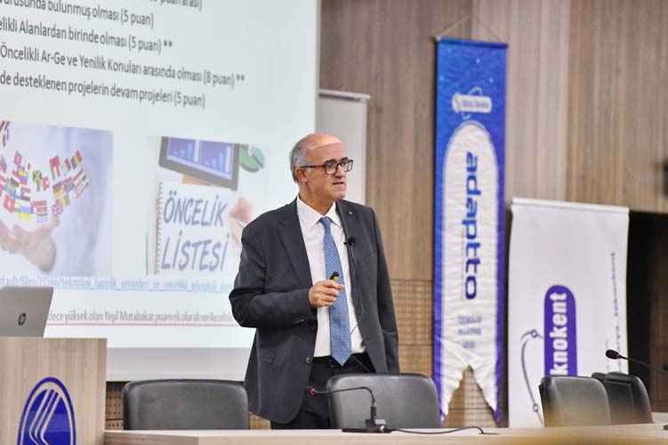 TÜBİTAK’ın yenilikçi üretim teknikleri, Ar-Ge ve inovasyon için ortaya koyduğu destekleri anlatan TÜBİTAK TEYDEB Başkan Yardımcısı Hasan Selçuk Selek nitelikli ve doğru projelerle üniversite-sanayi iş birliğine yönelik çalışmalar yaptıklarını söyledi. Sanayi, ekosistem, teknogirişim ve yapay zeka gibi birçok alanda yapılan projelere destek verdiklerini belirten Selek TEYDEB’in teknoloji destek grupları ve çalışma usül ve esasları hakkında bilgi verdi.