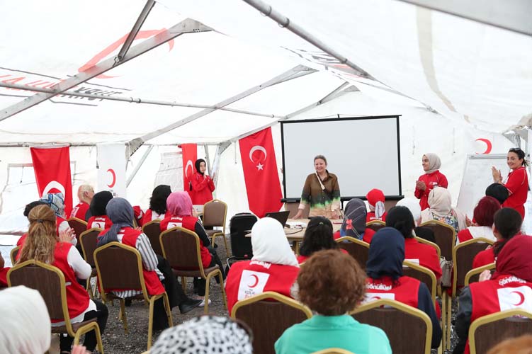 Sakarya İl Merkezi Başkanı Cevdet Koç kadın gönüllülerin özellikle afet ve insani yardım konuları başta olmak üzere afetlere hazırlıklı olma, afetzedelere ulaşma ve bu alanlarda uzmanlaşmak üzere eğitim aldığını bildirdi.