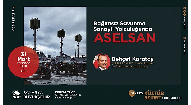 ASELSAN SST Sektör Başkanı ve Genel Müdür Yardımcısı Behçet Karataş, 31 Mart’ta AKM’de gerçekleştirilecek “Bağımsız Savunma Sanayii Yolculuğunda ASELSAN” isimli konferansa konuşmacı olarak katılacak. Karataş, ülkenin savunma sanayii anlamında yaptığı atılımlar ve bu noktada ASELSAN’ın yaptığı çalışmaları anlatacak. Konferans saat 19.30’da başlayacak. Tüm vatandaşlar, programa ücretsiz olarak katılabilecek.