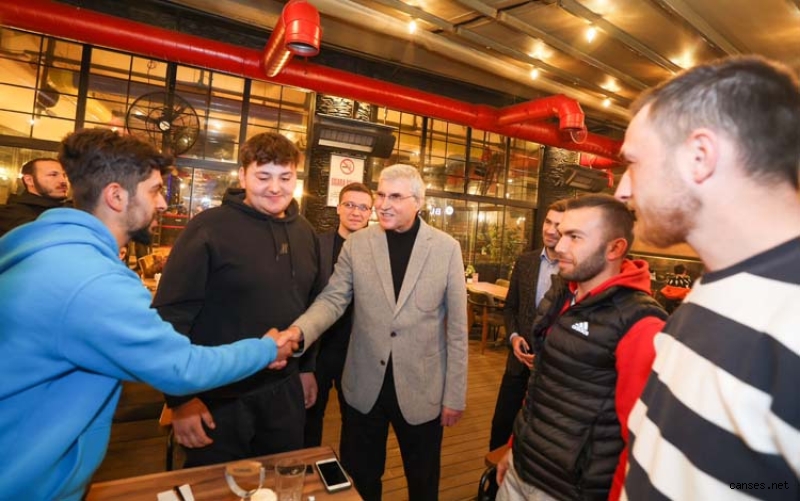 Gençlerin yoğun ilgisiyle karşılaşan Başkan Yüce, kafelere uğradı, gençlerle çay içip sohbet etti. Tek tek kafeleri dolaşan Yüce, gençlere 14 Mayıs seçimlerinin önemini, Türkiye Yüzyılı vizyonunu gençlerle birlikte inşa edileceğini anlattı. Gençler yerli ve milli TOGG aracına büyük ilgi gösterdi, bu anları fotoğrafla ölümsüzleştirdi. Türkiye Yüzyılı’nın meşalesini birlikte yakacaklarını vurgulayan gençler, Başkan Yüce ve beraberindeki heyete her mekânda şölen gibi bir karşılama yaptı.