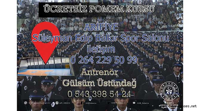 Sakarya Gençlik ve Spor İl Müdürlüğü, Arifiye İlçe Spor Müdürlüğü tarafından POMEM mülakatlarında öğrencilerin başarılı olması için ihtiyaç duydukları tüm teknik, kuvvet ve kondisyon çalışmalarını eksiksiz olarak yapmalarının sağlanması ve öğrencilerin sınavlara iyi bir şekilde hazırlanmasını sağlanmalarını hedefleyen kurs dan POLİS adayları ÜCRETSİZ olarak faydalanacaklar.