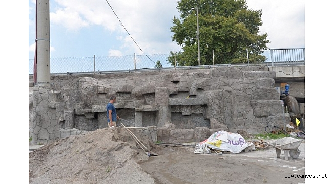 Hendek Belediyesi tarafından yapılan Uludere 2. Etap Rekreasyon Projesi kapsamında Köprübaşı E-5 Köprüsü altına şelale yapılıyor.