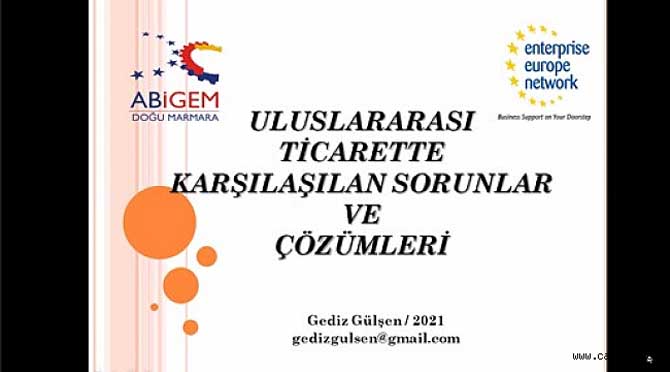 Eğitmen Ediz Gülşen sunumu sırasında verdiği bilgilerde genel olarak şunları dile getirdi: “Dış ticarette sorunla karşılaşmamak tabi ki de mümkün değil. Dış ticarette ne kadar çok deneyim çok kadar başarı getirmektedir. Yılmadan, bıkmadan, usanmadan iyi planlama, iyi kurgu ve cesaret ile yapılacak bir iştir. Dış ticarette bilmek, hazırlıklı olmak ve buna uygun aksiyon almak gerekiyor.