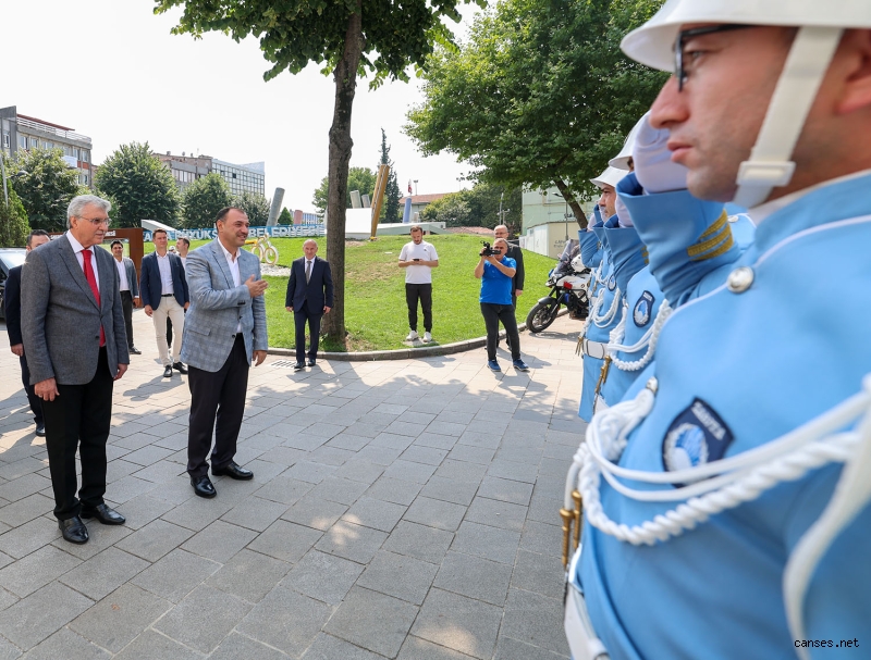 Vali Kaldırım’ı makamında ağırlayan Başkan Ekrem Yüce, “İşbirliği halinde uyum içerisinde şehrimize hizmet etmeye çalıştık. Sakarya’mıza sunduğu katkılar ve hizmetler dolayısıyla Valimiz Çetin Oktay Kaldırım’a teşekkür ediyor, yeni görevinde başarılar diliyorum. Gerek şehrimizde gerekse deprem bölgesindeki çalışmalarınızı yakinen takip ettik. Bizler sizden razıyız” derken Vali Kaldırım ise, “Başkanlarımızla, belediyelerimizle her zaman uyumlu çalıştık. Burada huzur ortamında bir çalışma gerçekleştirdik. Şehrimizin birçok sorununa çözüm olduk” dedi.
