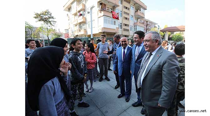 Hamdi Nayir, okul bahçesinde bir süre öğrencilerle sohbet etti. Vali Nayir’i karşılayarak