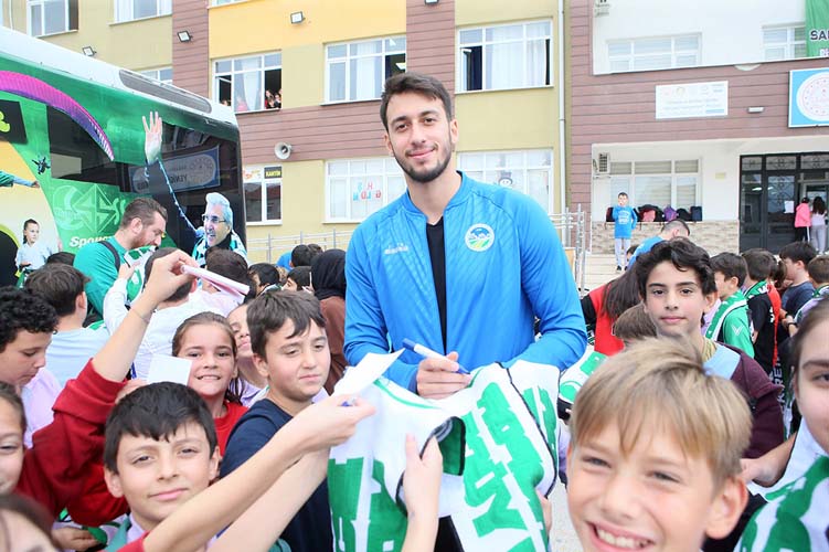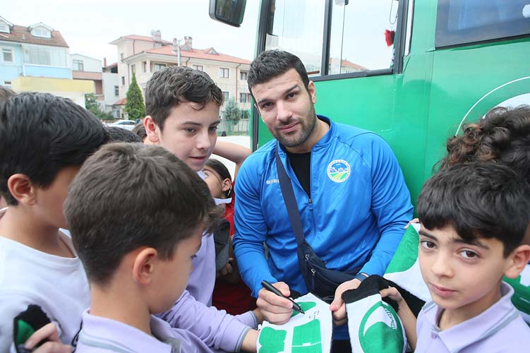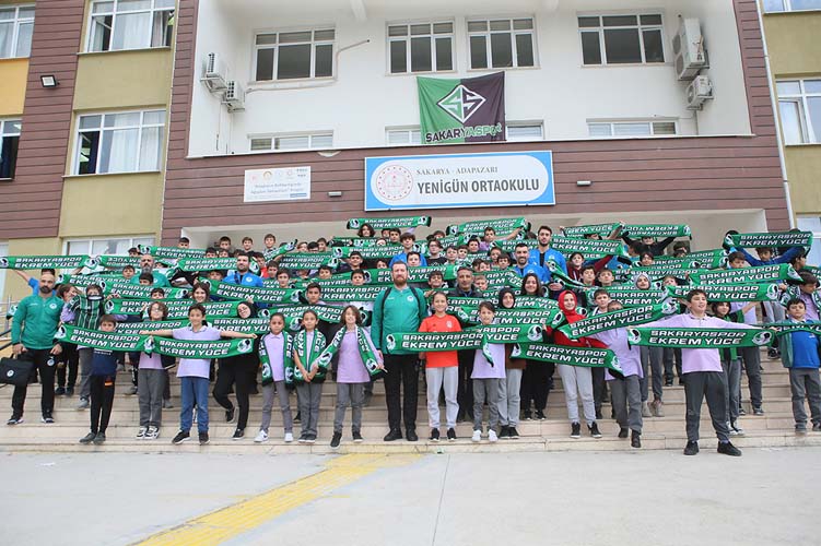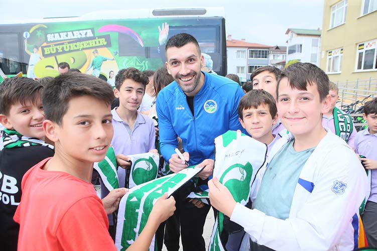 Sakarya Büyükşehir Belediyesi Hentbol Takımı çeşitli programlar kapsamında minik öğrencilerle buluşmaya devam ediyor. Son olarak Yenigün Ortaokulu’nu ziyaret eden teknik heyet ve oyuncular, minik öğrencilerle keyifli bir söyleşi gerçekleştirdi. Oldukça sıcak bir ortamda gerçekleşen programda, öğrencilerin sorularını yanıtlayan Hentbol Takımı, program sonunda minik spor severlere atkı hediye ederek imza töreni gerçekleştirdi. Hentbola dair her şeyin konuşulduğu etkinliğe Baş Antrenör Mehmet Fatih Işık, Yardımcı Antrenör Tevfik Karagözoğlu katılırken oyunculardan ise İbrahim Bircan, Baran Demirdelen, Tahir İlkbahar ve Milos Lojanicic yer aldı.