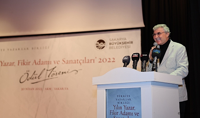 Başkan Ekrem Yüce, “1981’den bu yana düzenlenen böylesi köklü bir ödül törenine ev sahipliği yapmanın mutluluğunu yaşıyoruz. Sakarya çok kültürlü yapısı sayesinde kültürel çalışmalarda sürekli olarak yer alan bir şehirdir. Sakarya’mızda kültürel çalışmalara ve faaliyetlere önem gösteriyoruz. Sakarya fikirlere düşüncelere yeni ufuklara yol açan güzide bir şehirdir. Fikirleri her zaman önemsiyor ve onların eylemlere dönüşmesini her zaman destekliyoruz. Misalen şöyle diyebilirim; Bir ateş suyu ısıtmak için saatlerce yanar ancak bir su damlası ateşi anında söndürür. Fikirlerde aynen böyledir. Bir fikri, düşünceyi oluşturmak, yaymak, kabul ettirmek için saatlerce, günlerce hatta yıllarca uğraşırsınız. O oluşturulan fikri bir kötü fikir anında yok edebilir. Dolayısıyla her şeye rağmen fikirlerimizi çekinmeden, üşenmeden, yorulmadan eylemsele faaliyete geçirmeliyiz ki kalıcı olabilsinler” diye konuştu.