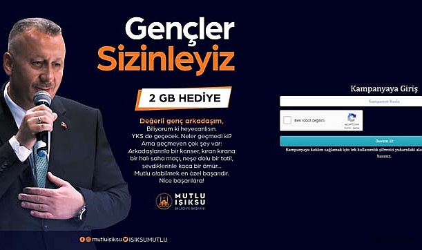 Başkan Işıksu gönderdiği mesajda, “Değerli genç arkadaşım, biliyorum ki heyecanlısın. YKS de geçecek. Neler geçmedi ki? Ama geçmeyen çok şey var: Arkadaşlarınla bir konser, kıran kırana bir halı saha maçı, neşe dolu bir tatil, sevdiklerinle koca bir ömür. Mutlu olabilmek en özel başarıdır. Nice başarılara. Sana özel birçok hizmetle her zaman yanında olmaya gayret ederken, bugün de 2 GB internet paketi hediye etmek isterim. https://hediyegb.adapazari.bel.tr/ adresinden sana özel tanımlanmış kod ile kolayca hattına yükleme yapabilirsin. En derin sevgilerimle.” ifadelerini kullandı.