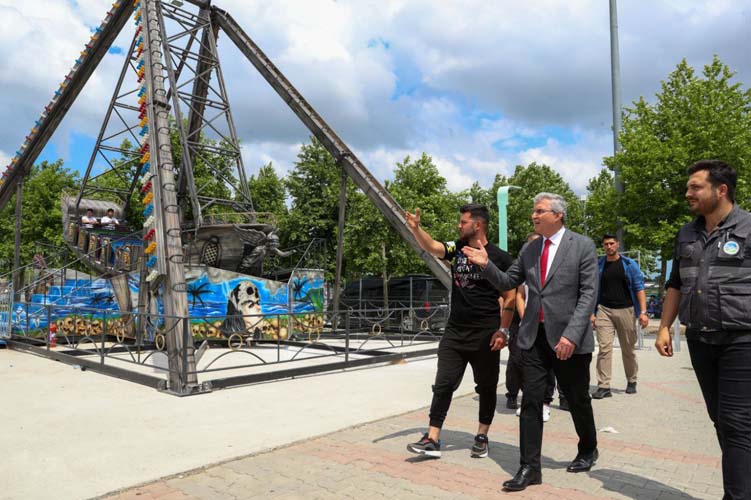 Bir süredir projeyi yakından takip eden Başkan Ekrem Yüce, lunapark alanında ve hazırlanan oyun alanlarında detaylı bir inceleme yaptı. İçerisinde 8 farklı tren, gondol, çarpışan araç, su kanosu, atlı tren-atlıkarınca, dönme dolap, samba balonu, kamikaze, crazy dance, kule, büyük discovery, gezi treni, uçak, sekolin, hayvanlar âlemi ve zıp zıp gibi oyun gruplarını bulunduran lunaparkın Sakarya’nın sosyal yaşamı için büyük bir kazanç olduğunu ifade eden Başkan Yüce, “Şehrimizin her alanda gelişmesi noktasında önemli projeler yürütüyoruz. Millet Bahçesi, Ters Ev, Vagon Kıraathanesi, Uçak Kıraathanesi gibi birçok donatı alanımızı şehrimize kazandırdık. Bu projemiz de eğlence sektöründe Sakarya’nın merkezi olacak ve kentin sosyalleşmesinde önemli bir rol oynayacak. Vatandaşlarımızın çocuklarıyla birlikte vakit geçirebileceği tesisin inşasını sezona yetiştirmek için hızla tamamladık, Sakarya’mıza hayırlı olsun” dedi.