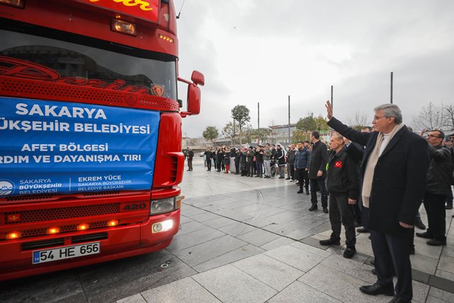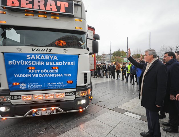 Sakarya Büyükşehir Belediyesi tarafından Demokrasi Meydanı’nda koordine edilen yardım merkezinden 4 tır yardım malzemesi ve bir afet koordinasyon tırı olmak üzere toplam 5 tır daha Diyarbakır’a gitmek üzere yola çıktı. Gıda kolisinden ısıtıcıya kadar tüm ihtiyaç malzemelerinin yer aldığı araçlar Diyarbakır’da kurulan çadırkentte depremzedelere ulaştırılacak. Sakarya Büyükşehir Belediye Başkanı Ekrem Yüce’nin bizzat inceleyip Sakarya’dan uğurladığı yardım tırları Demokrasi Meydanı’ndan dualarla hareket etti.
