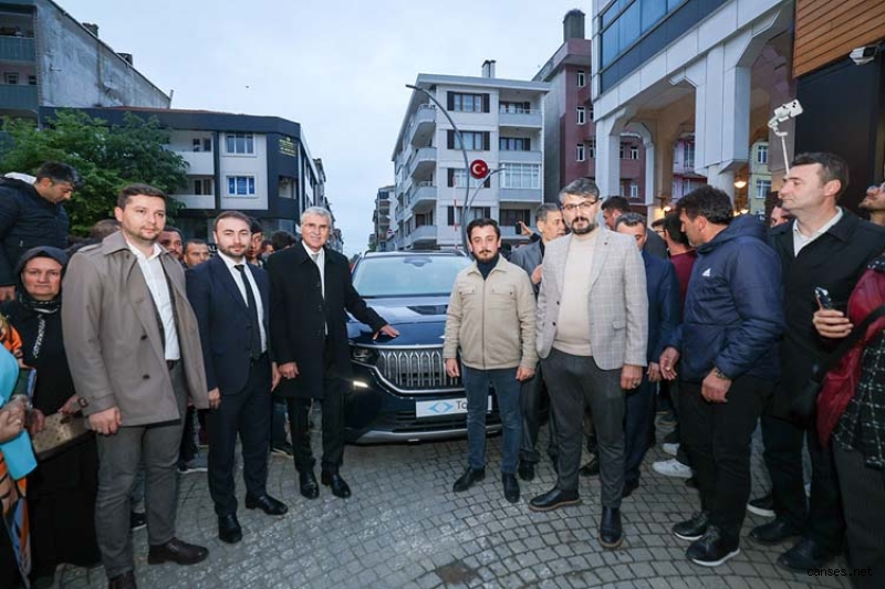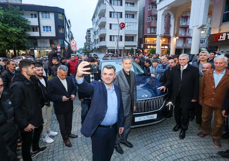 Başkan Yüce, Kocaali ziyaretinin ardından Karasu temaslarında bulundu. Erenler Belediye Başkanı Fevzi Kılıç, AK Parti Erenler İlçe Başkanı Erdal Köse, Karasu Belediye Başkanı İshak Sarı, Ak Parti İlçe Başkanı Recep Aksu ve Karasulularla, Karasu Belediye binası önünce bir araya gelen Yüce, vatandaşlara Milli otomobilimiz TOGG ile gezintiye çıktı.