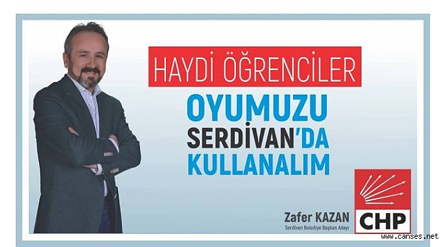 Cumhuriyet Halk Partisi Serdivan Belediye Başkan Adayı Zafer Kazan, Serdivan'da yaşadıkları halde ikametgahları memleketlerinde olan Sakarya Üniversitesi öğrencilerine "Serdivan'da oy kullanmaları" çağrısında bulundu.